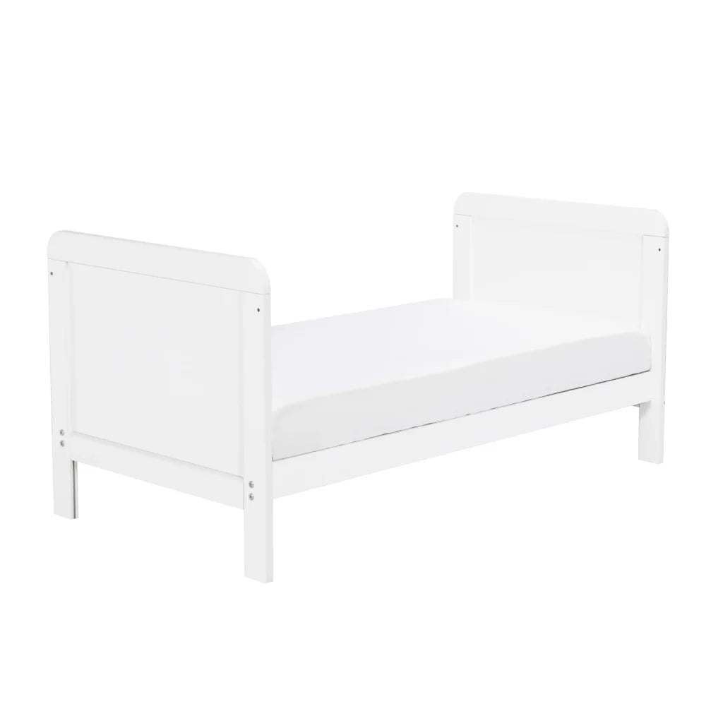 Designed for those with smaller rooms, it’s suitable from birth until around 4 years of age. Your little one will start in the cot, which has three different mattress positions enabling you to easily lift baby in and out. Then, as your precious bundle grows, the cot effortlessly converts into a gorgeous toddler bed.