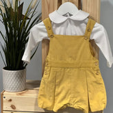 Get them ready for playtime with this adorable cotton outfit. The set includes a white long-sleeve jersey bodysuit and yellow cord dungarees.