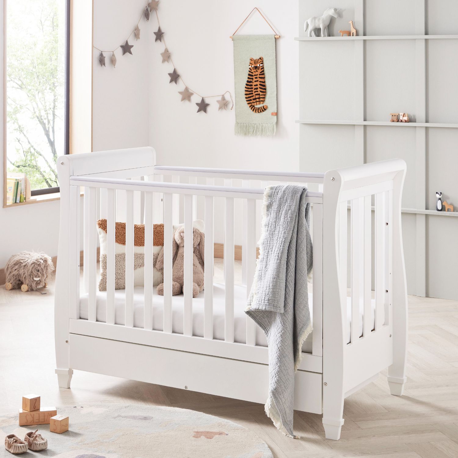 The sleek and stylish sleigh cot bed will transport you and your baby to a world of cosy dreams and peaceful slumber. With its smooth curves and elegant design, this cot bed is more than just a place to sleep; it’s a sanctuary for your little one. Crafted from high-quality materials, this cot bed is built to last and ensure your baby’s safety and comfort for years to come.