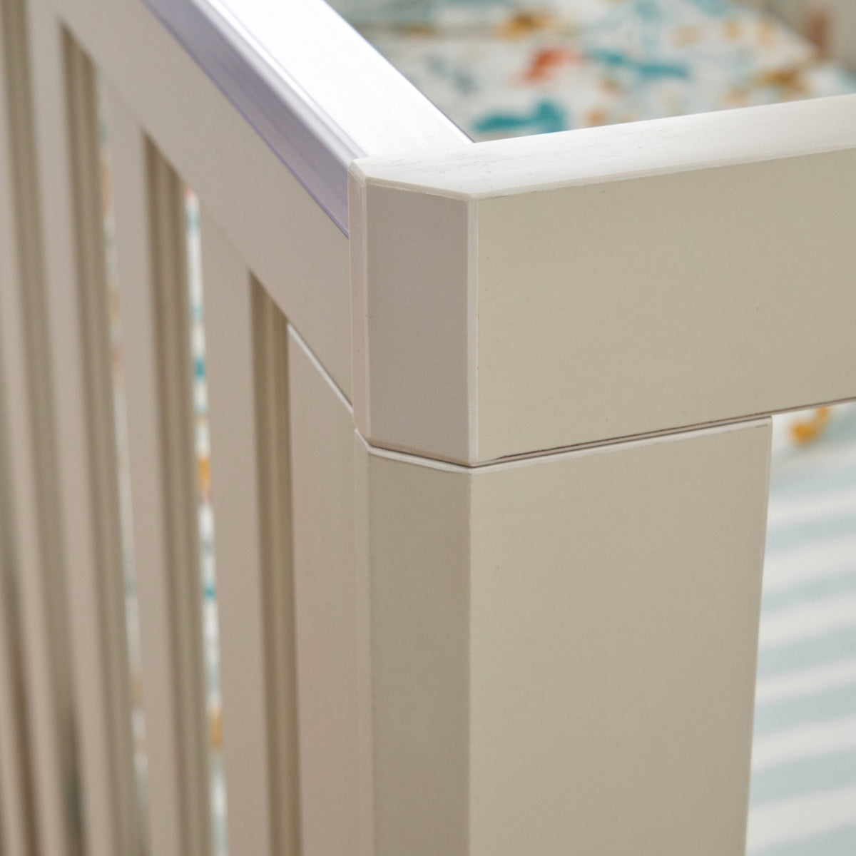 Meet our Hygge 3 Piece Room Set in Light Oak and White Sand - a Scandinavian-inspired blend of modern simplicity and functionality. With bevelled edges, stylish splayed legs and chic cut-out handles, it's the ideal choice for those seeking a minimalistic, contemporary nursery look. Practical and versatile, this set includes a cot bed that converts to toddler bed, a practical chest changer and a spacious wardrobe to store all your baby’s essentials.